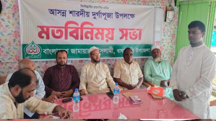 শুক্রবার সকালে বাংলাদেশ জামায়াত ইসলামি বাঘাইছড়ি উপজেলা কার্যালয়ে আসন্ন শারদীয় দুর্গাপূজা উদযাপন কমিটির সাথে বাঘাইছড়ি উপজেলা জামায়াতে ইসলামী মতবিনিময় সভার আয়োজন করা হয়েছে