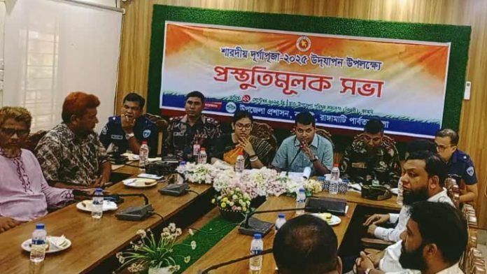 শারদীয় দুর্গাৎসব উপলক্ষে রাঙামাটির কাপ্তাই উপজেলা প্রশাসনের উদ্যোগে এক প্রস্তুতিমূলক সভা সোমবার সকাল ১১ টায় কাপ্তাই উপজেলা পরিষদ এর সম্মেলন কক্ষে অনুষ্ঠিত হয়।