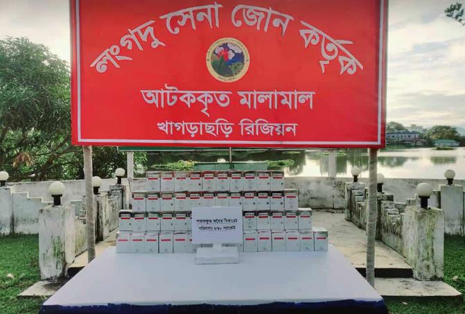 রাঙামাটির বাঘাইছড়ি উপজেলার খেদারমারা ইউনিয়নের হীরারচর ও কালাপাকুইজ্জ গাতাছড়া এলাকায় গোপন সংবাদের ভিত্তিতে অভিযান চালিয়ে বিপুল পরিমাণ ভারতীয় সিগারেট জব্দ করেছে সেনাবাহিনীর লংগদু জোন।