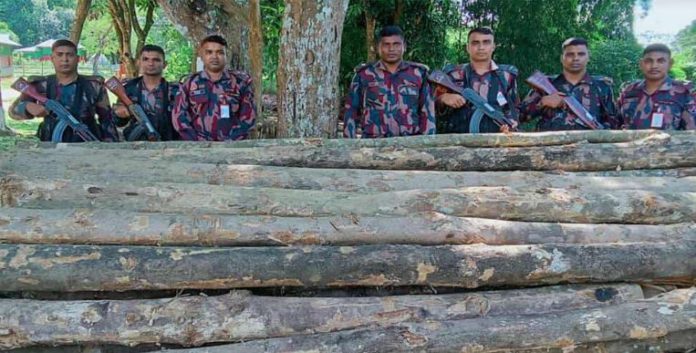 রাঙামাটির লংগদুতে রাজনগর ব্যাটালিয়ন ৩৭ বিজিবি জোনের অভিযানে বিপুল পরিমাণ অবৈধ সেগুন কাঠ জব্দ করেছে বিজিবি।