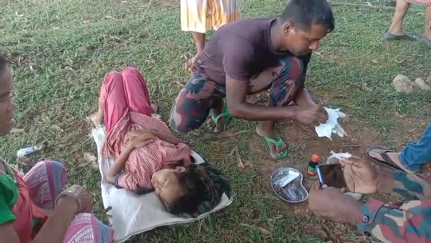 আশপাশে কোন হাসপাতাল বা কমিউনিটি ক্লিনিক না থাকায় পাশের বিজিবি বিওপিতে নিয়ে আসে। পরে বিওপির মেডিকেল সহকারী সিপাহী হাফিজ ব্যাটালিয়ন সদরে মেডিকেল অফিসারের যোগাযোগ করে প্রয়োজনীয় চিকিৎসা দিয়ে উন্নত চিকিৎসার জন্য খাগড়াছড়ি সদর হাসপাতালে পাঠানোর পরামর্শ দেয়।