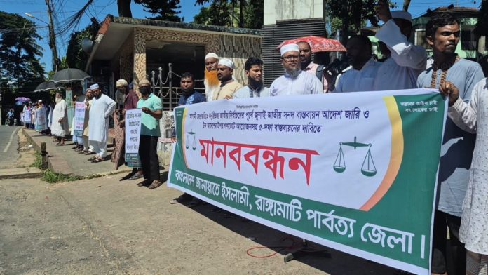 আগামী জাতীয় নির্বাচনে পিআর পদ্ধতিকে জুলাই সনদে অন্তর্ভুক্ত করে গণভোট দেওয়া, সুষ্ঠু ও গ্রহণযোগ্য নির্বাচনের জন্য লেভেল প্লেয়িং ফিল্ড তৈরি করা, জাতীয় পার্টি নিষিদ্ধসহ পাঁচ দফা দাবি আদায়ে রাঙামাটিতে মানববন্ধন কর্মসূচি পালন করেছে বাংলাদেশ জামায়াতে ইসলামী।