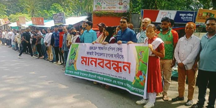 বাংলাদেশ ক্রীড়া শিক্ষা প্রতিষ্ঠান( বিকেএসপি) এর আঞ্চলিক প্রশিক্ষণ কেন্দ্র রাঙামাটির কাপ্তাই উপজেলায় স্থাপনের দাবিতে বৃহস্পতিবার সকাল ১১ টা মানববন্ধন কর্মসূচি পালন করা হয়েছে।