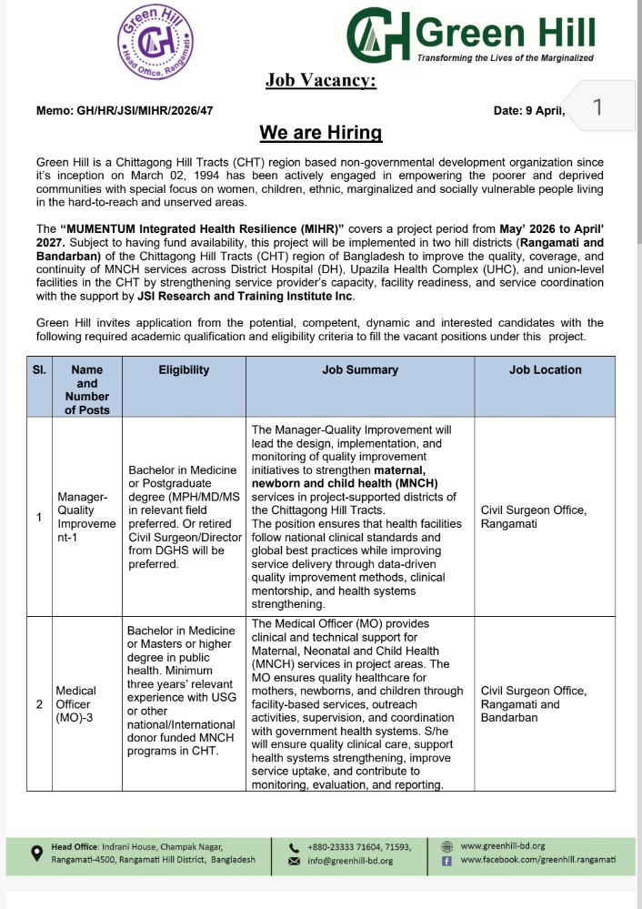 মূলপাতাঅর্থনীতিগ্রীন হিলের নিয়োগ বিজ্ঞপ্তি অর্থনীতিএনজিওবিজ্ঞপ্তি গ্রীন হিলের নিয়োগ বিজ্ঞপ্তি পূর্ব নিউজ ডেস্ক এপ্রিল ১২, ২০২৬ ২:৪৪ পূর্বাহ্ণ 908 Share FacebookTwitterPinterestWhatsApp জনবল নিয়োগ দিচ্ছে বেসরকারি উন্নয়ন সংস্থা গ্রীনহিল Share FacebookTwitterPinterestWhatsApp পূর্ববর্তী নিবন্ধচিংম্রং বৌদ্ধ বিহারে সাংগ্রাঁই জল উৎসব ১৫ এপ্রিলপরবর্তী নিবন্ধরাঙামাটিতে ইউপিডিএফ নেতাকে গুলি করে হত্যা, আহত ২ বোন RELATED ARTICLES বিজ্ঞপ্তি কাপ্তাই ব্যাটালিয়নের প্রতিষ্ঠা বার্ষিকী উদযাপন এপ্রিল ৮, ২০২৬ অর্থনীতি রাঙামাটিতে নারী হেডম্যান-কার্বারী সম্মেলন অনুষ্ঠিত এপ্রিল ৮, ২০২৬ অর্থনীতি রাঙামাটিতে পার্টনার ফিল্ড স্কুল কংগ্রেস অনুষ্ঠিত এপ্রিল ৬, ২০২৬ একটি উত্তর ত্যাগ উত্তর বাতিল মন্তব্য: আপনার মন্তব্য লিখুন দয়া করে! নাম* এখানে আপনার নাম লিখুন দয়া করে * আপনি একটি ভুল ইমেইল ঠিকানা প্রবেশ করেছেন! এখানে আপনার ইমেইল ঠিকানা লিখুন দয়া করে ওয়েবসাইট: পরের বার আমি মন্তব্য করার জন্য এই ব্রাউজারে আমার নাম, ইমেল, এবং ওয়েবসাইট সংরক্ষণ করুন। Most Popular কবিতার পংক্তিমালা ও নূপুরের নিক্কণে মুখরিত কাপ্তাই এপ্রিল ১৮, ২০২৬ রাঙামাটিতে সাংগ্রাইয়ের জলকেলিতে মেঠে উঠল মারমা তরুণ-তরুণীরা এপ্রিল ১৭, ২০২৬ ইউপিডিএফ নেতা হত্যার প্রতিবাদে সড়ক অবরোধ ও প্রতিবাদ সমাবেশ এপ্রিল ১৭, ২০২৬ রাঙামাটিতে ইউপিডিএফ নেতাকে গুলি করে হত্যা, আহত ২ বোন এপ্রিল ১৭, ২০২৬ লোড Recent Comments